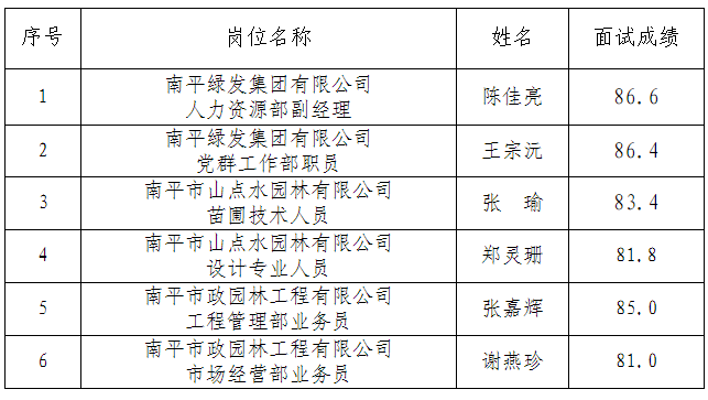 根據《南平綠發(fā)集團有限公司招聘公告》,我集團公司面向社會公開招聘工作已經結束。現將擬錄用人員名單予以公示。